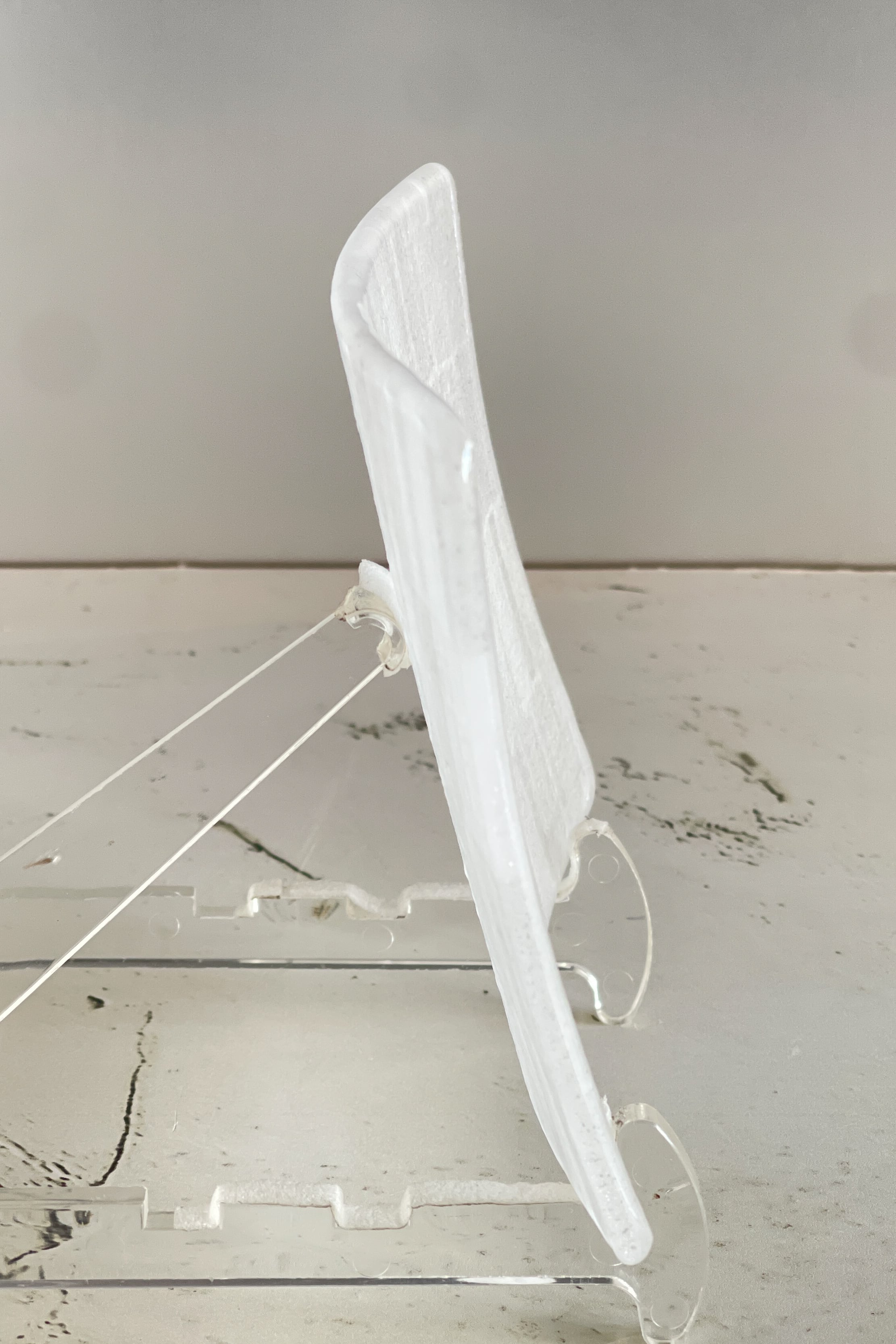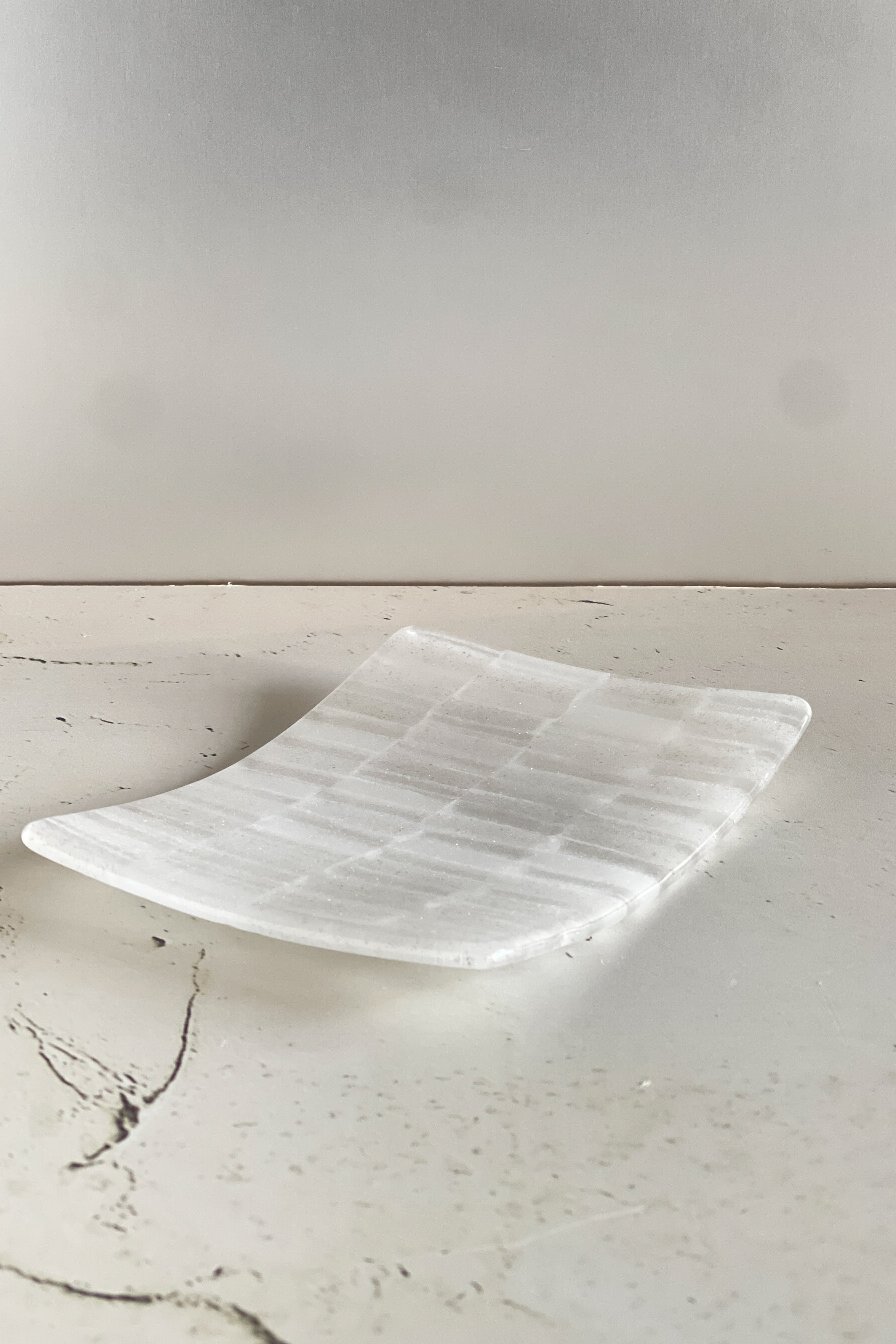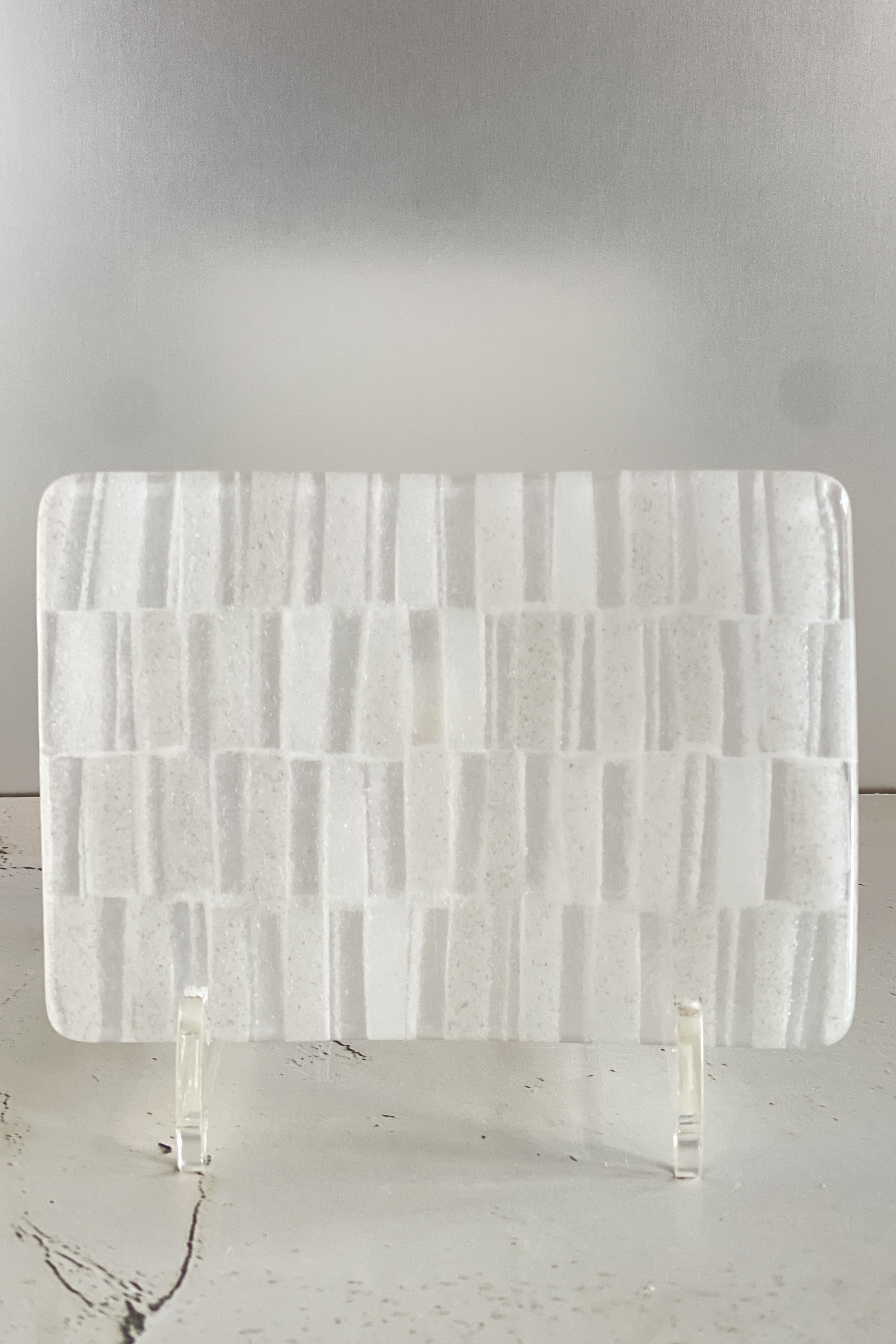 キルンワーク(ガス炉や電気炉)におけるガラスフュージング(ガラスパーツを熔着)技法でベースを制作し、ブロー(拭きガラス)で仕上げる手数を沢山必要とした作品です