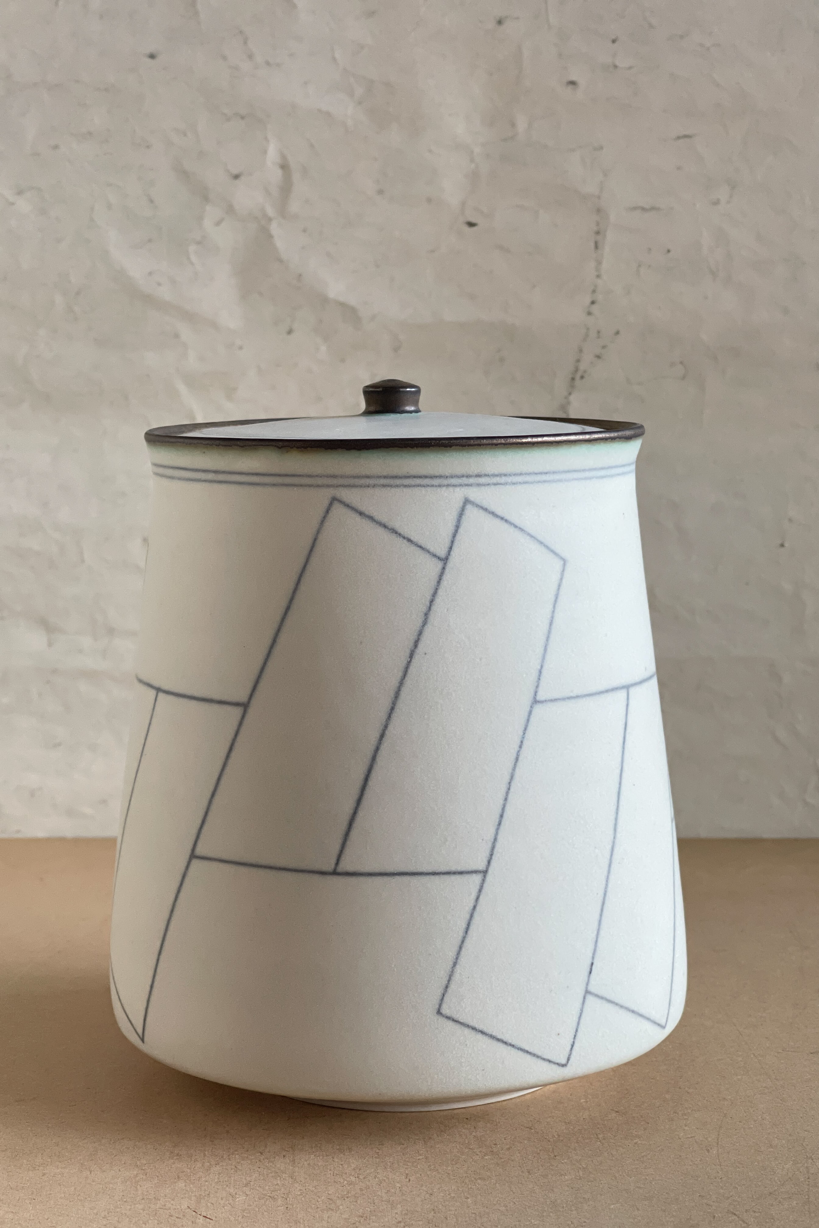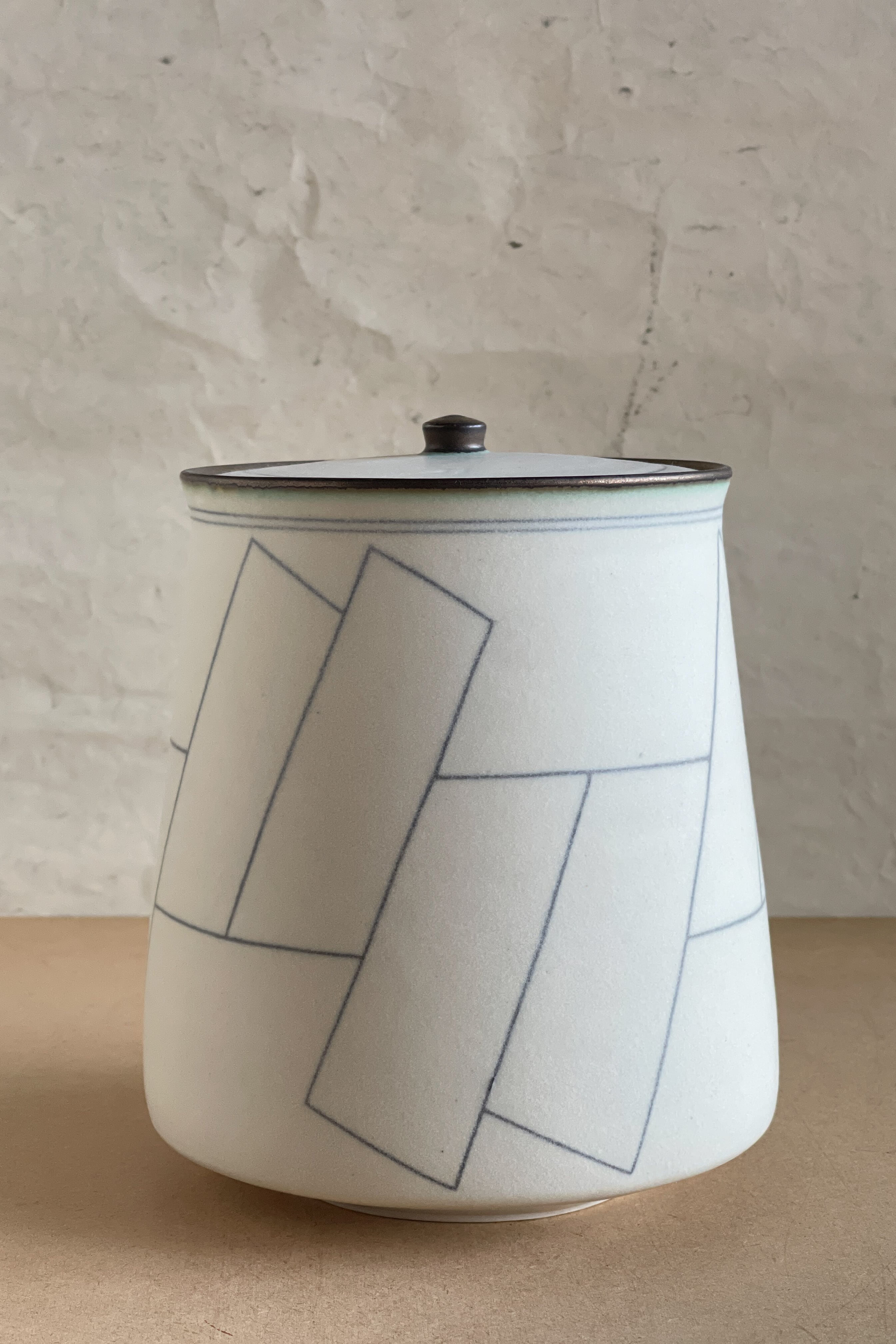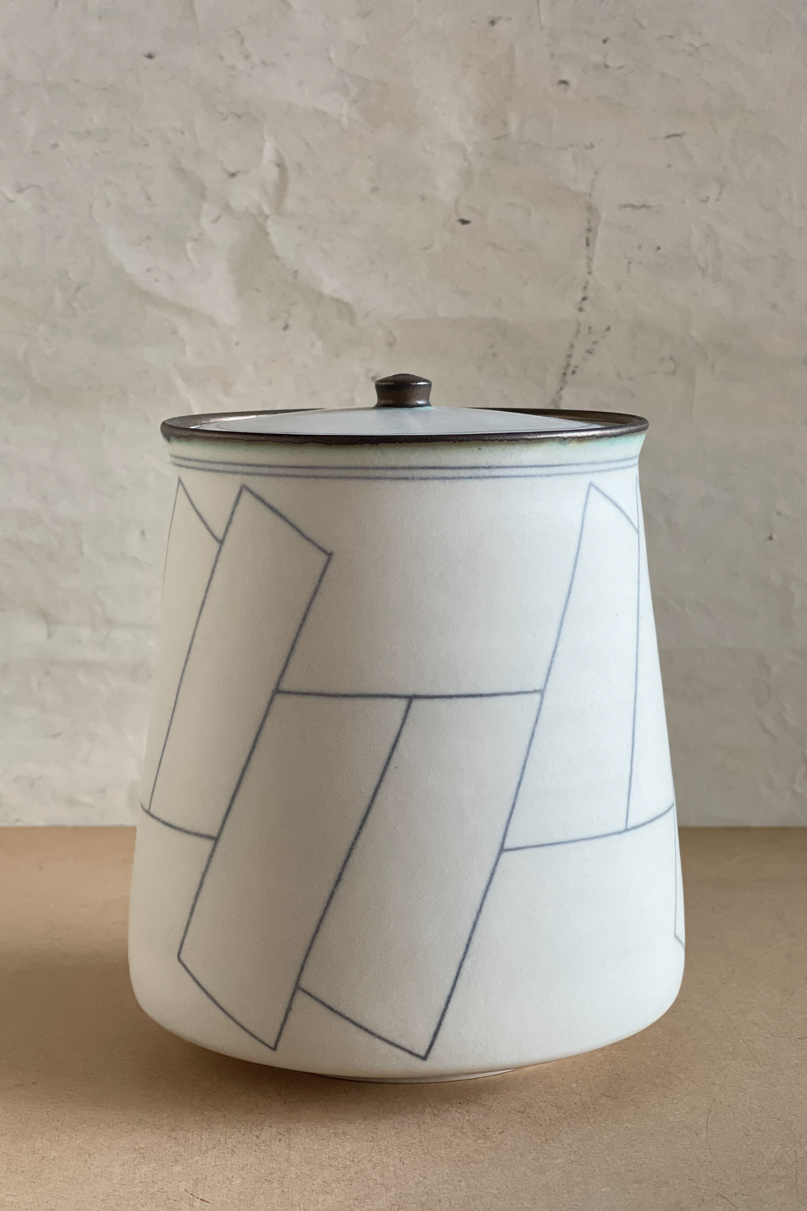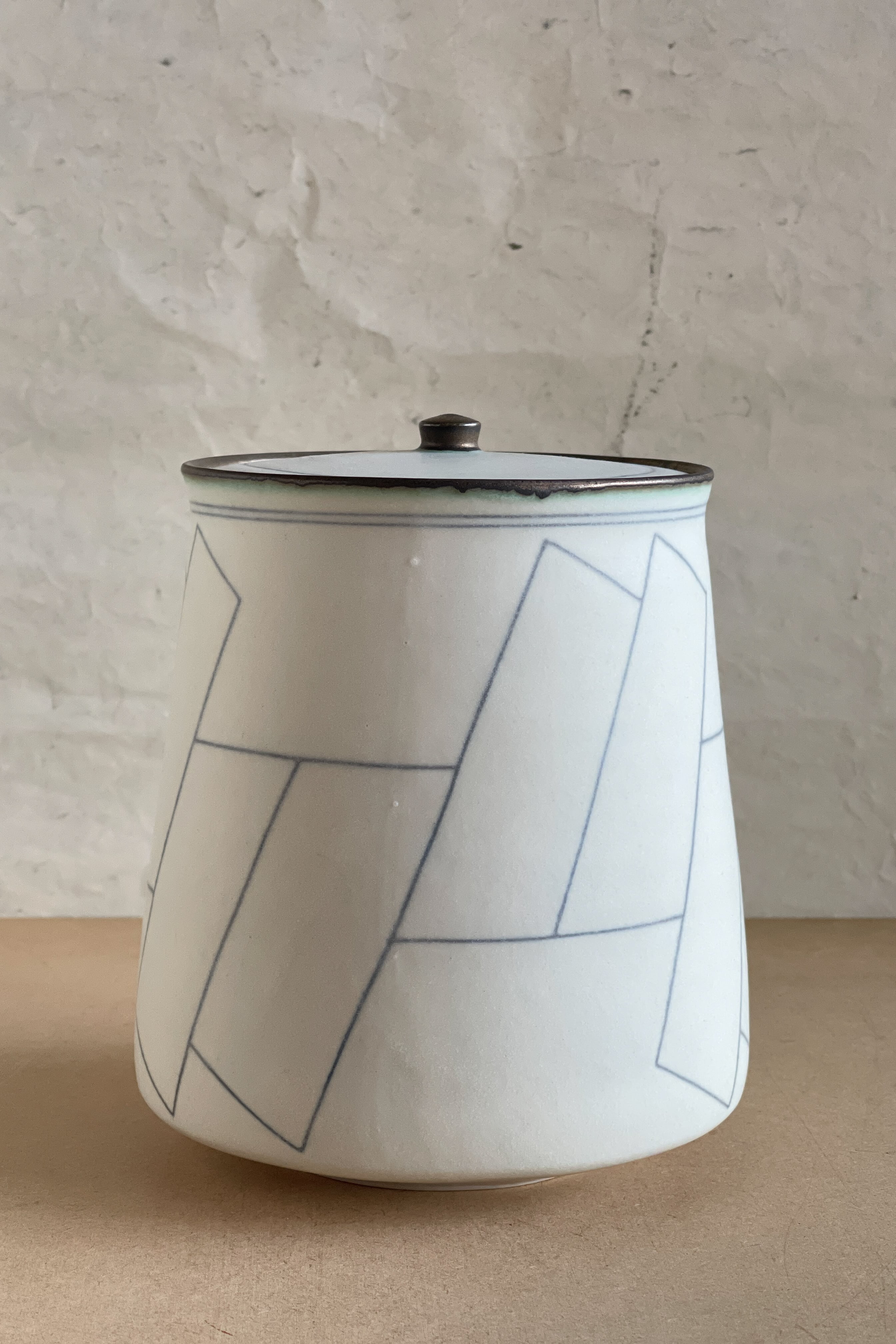 蓋物 大 ブルー幾何紋 小関康子作品 OY2604_41c
