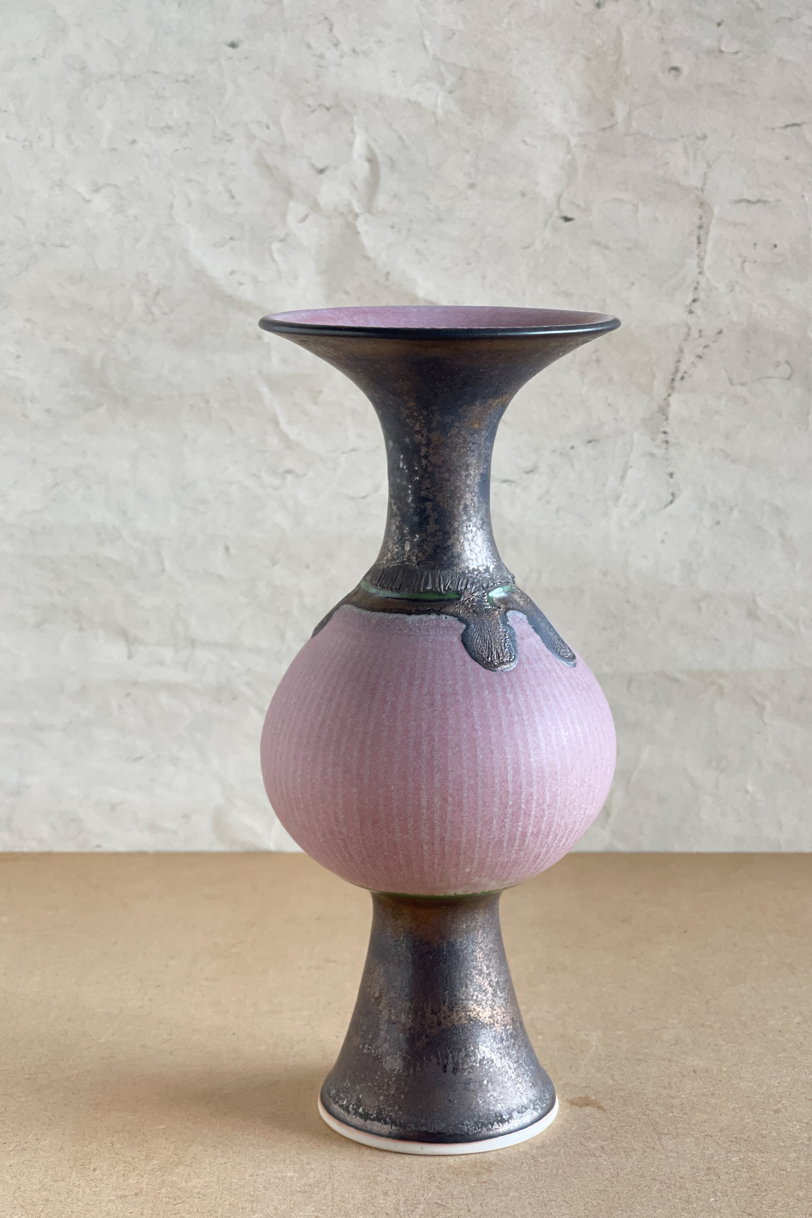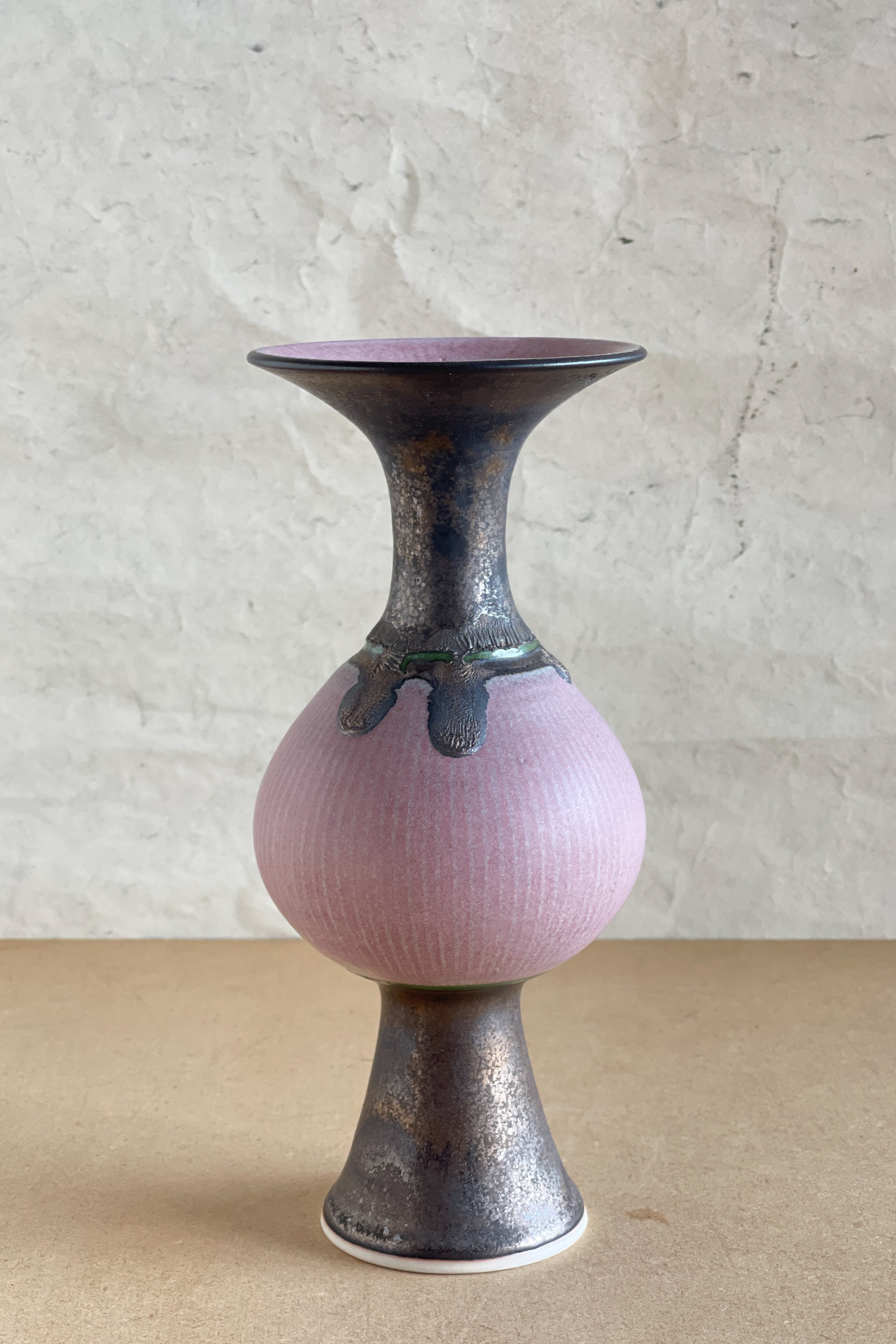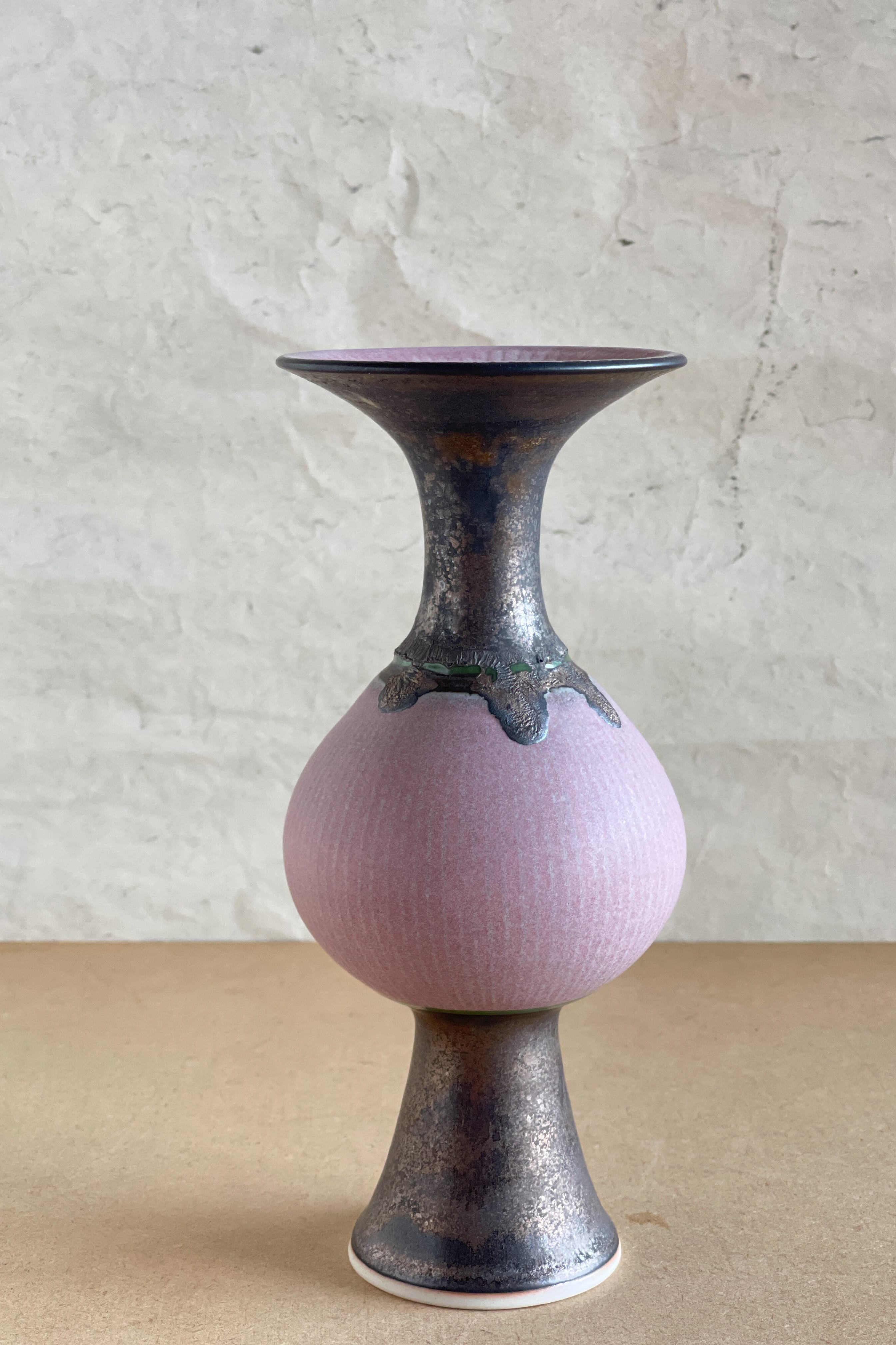 ピンク象嵌口広花器 小関康子作品 OY2604_52b