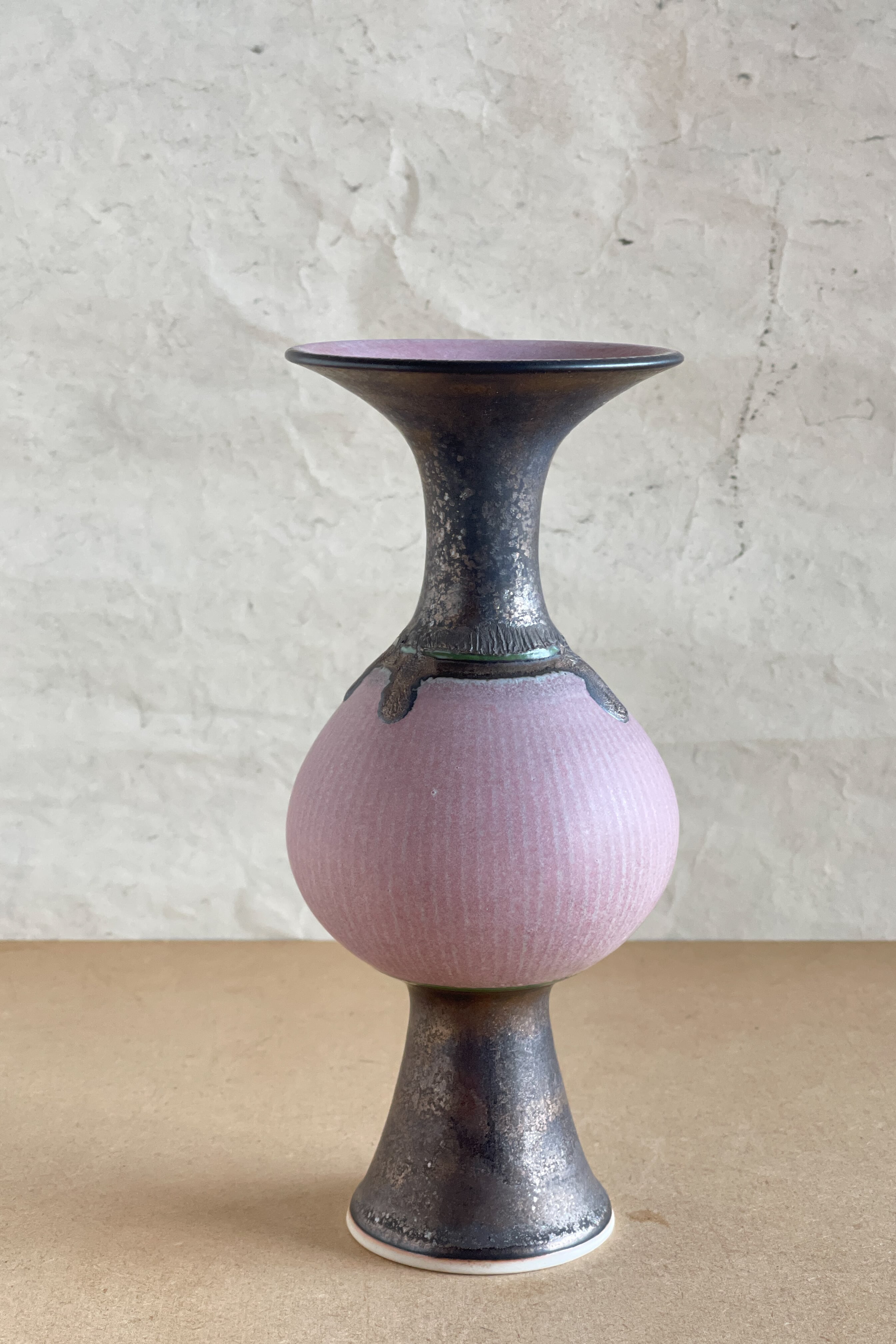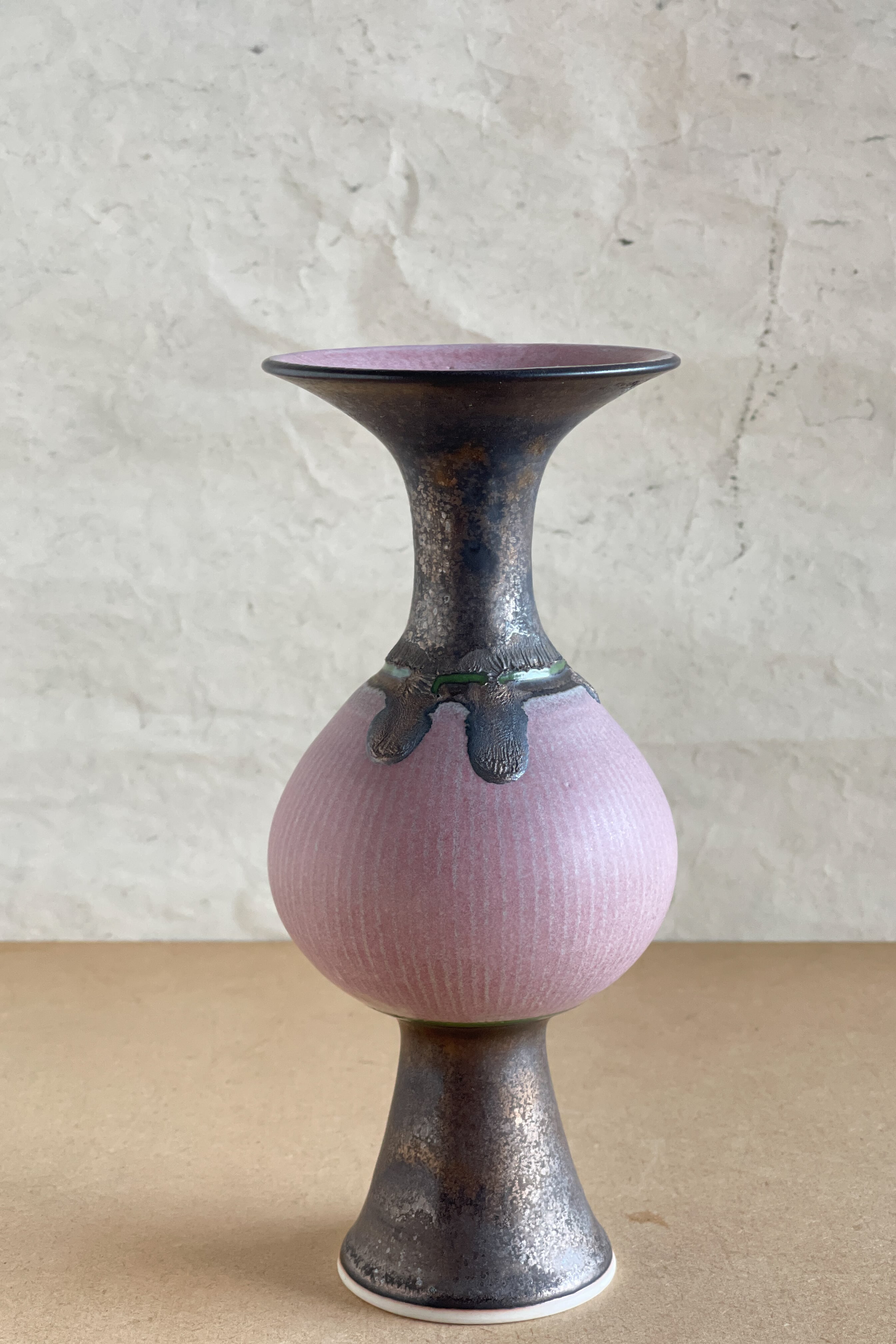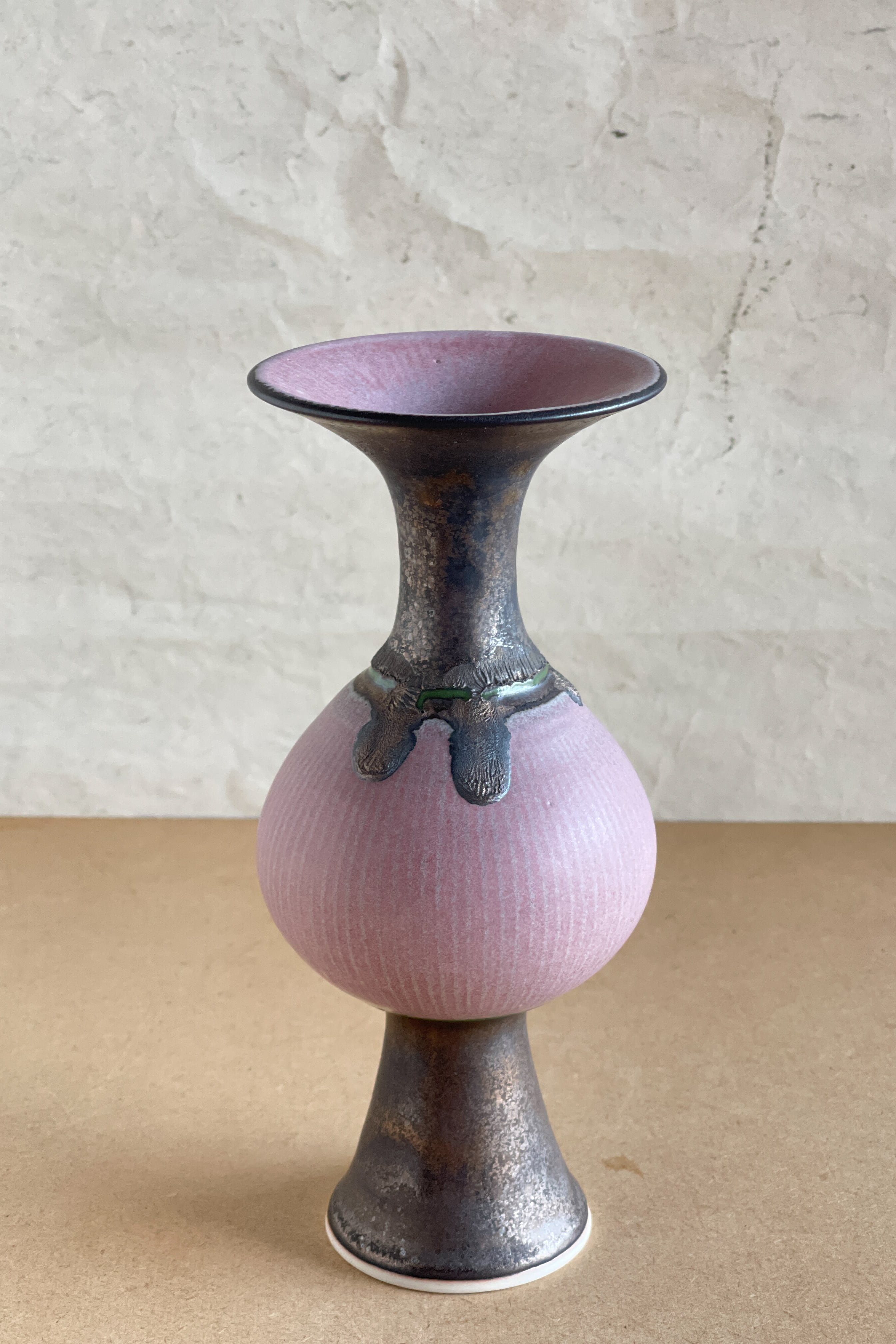 ピンク象嵌口広花器 小関康子作品 OY2604_52b