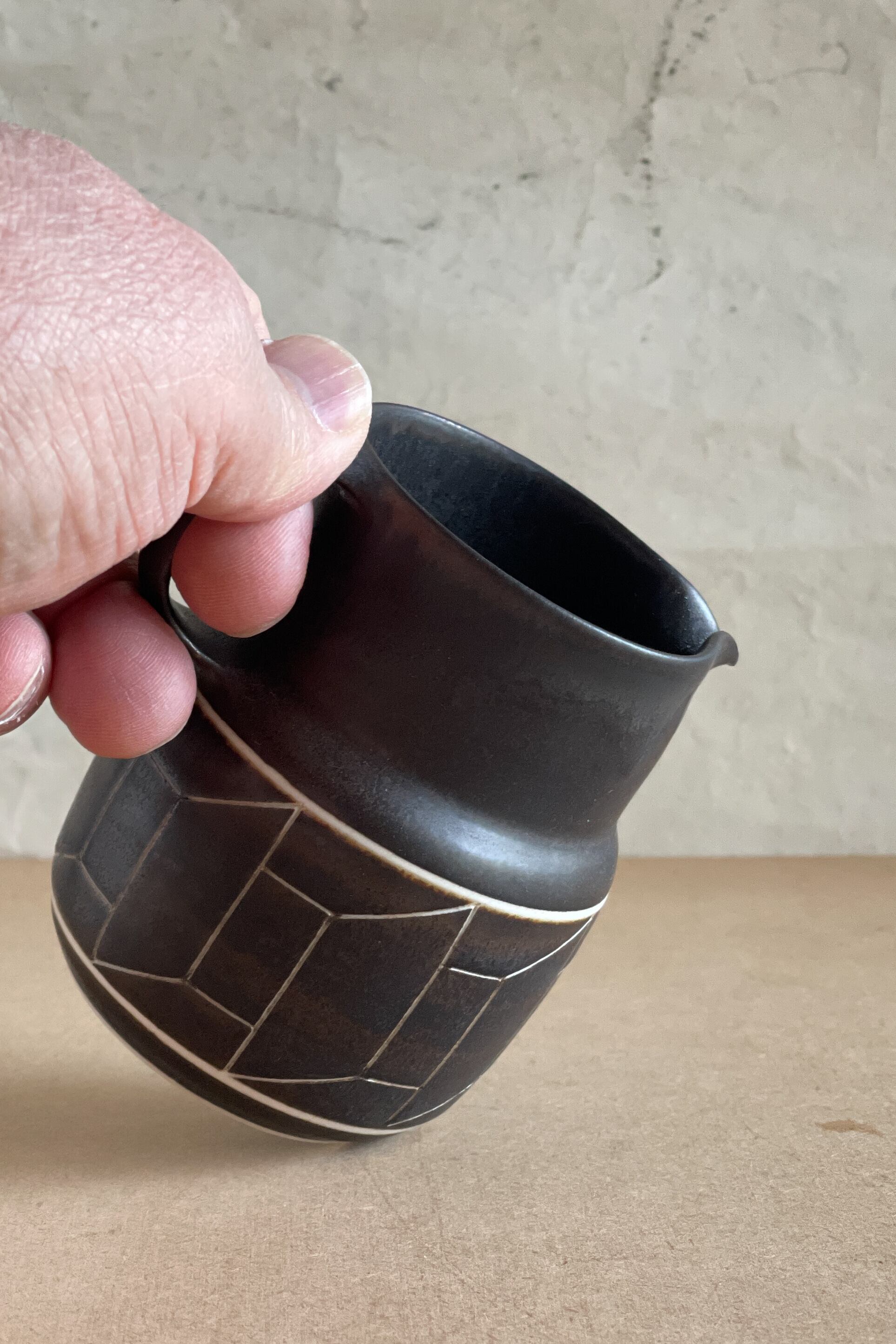 ピッチャー 茶釉線刻 小関康子作品 OY2604_26a