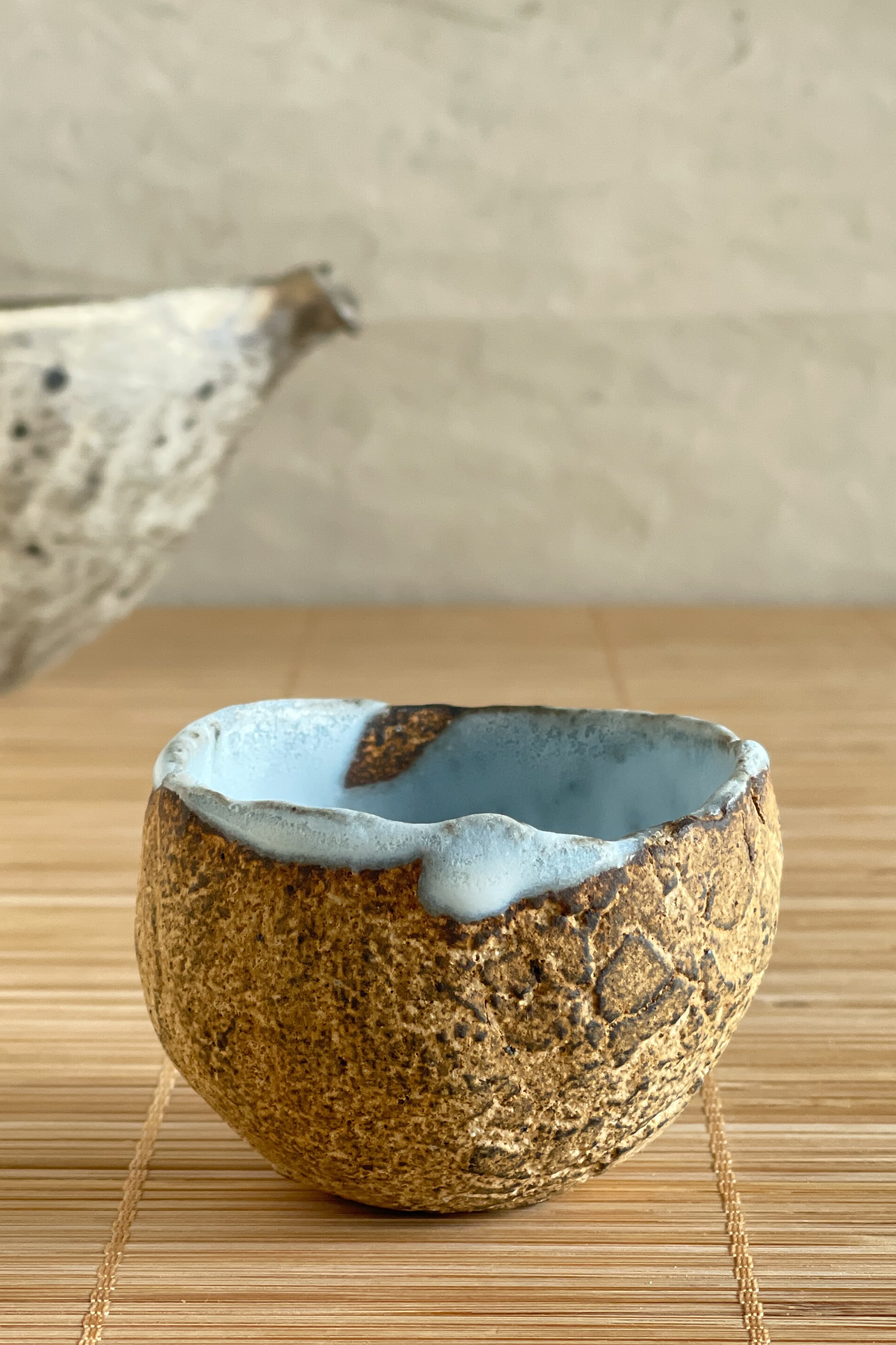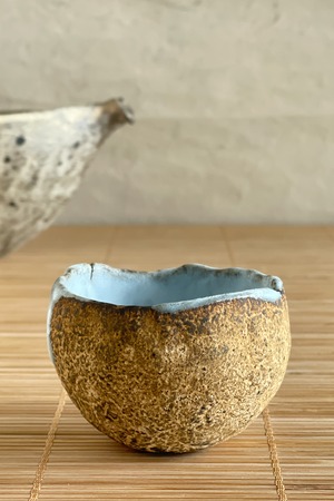 内藁灰釉砂化粧 酒盃 村上躍 作 MY2602_01