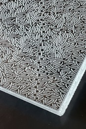 サンドブラストの技法で制作される三野さんの作品